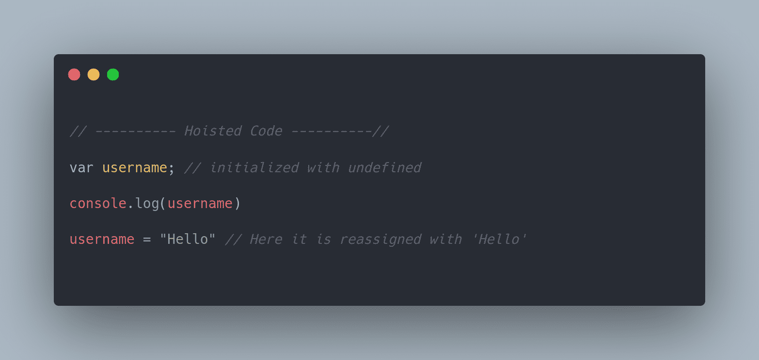 Hence if we try to console the value of username variable after the assignment, it will log ”Hello” to the console